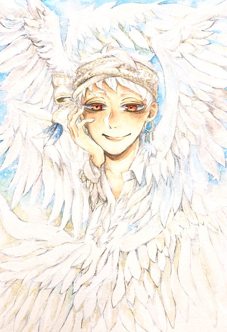 より白感を強めに2枚目を描きました🕊 カリムの制服姿って本当天使だと思うので…😌 最後に歯ブラシでスパッタリングをして完成! 次の黒は悪魔🐍にします🫶 #ゆるっとアナログ企画 #twstファンアート_白の彩り 上記のタグから素敵な作品が見れますので良かったら覗いてみてください☺️