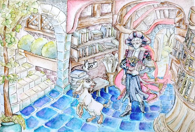 #ゆるっとアナログ企画 #手描きの図書館_twstファンアート #twstファンアート 「石畳の書庫」 今回も素敵な企画に参加させていただきました✨タグから素敵な手描きの図書館を巡ってみてください📚