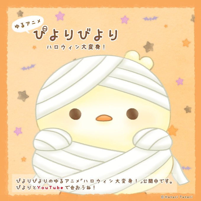 【ゆるアニメ】ぴよりびより「ハロウィン大変身!」 youtu.be/v14k5_qLI-g 公開中🎃👻 ミイラぴより、本格的だね✨ もうすぐ900回!いつもありがとう🐣 #ぴよりびより #ゆるい絵 #ゆるアニメ #ゆるイラスト #ゆるイラスト展覧会 #ひよこ #ゆるいイラスト #イラスト #絵描きさんと繫がりたい