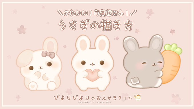 【年賀状イラスト】ぴよりびよりのおえかきタイム「うさぎの描き方」【ゆるアニメ】 youtu.be/NVweoPmYVE4 公開中🐣🎨 卯年らしく年賀状に可愛いうさぎさん描いてみませんか? #ぴよりびより #アニメ #howtodraw #ゆるアニメ #ゆるいイラスト #イラスト #ゆるイラスト展覧会 #アニメーション