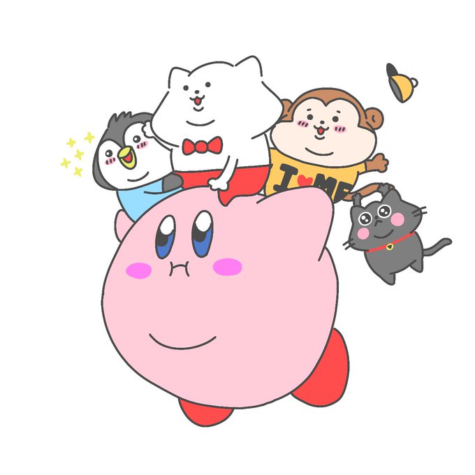 カービィに乗るアゴがたぷたぷしてる生き物たち。 #イラスト #イラスト好きな人と繋がりたい #イラスト好きさんと繋がりたい #絵描きさんと繋がりたい #ゆるキャラ #ゆるキャライラスト #ゆるい絵