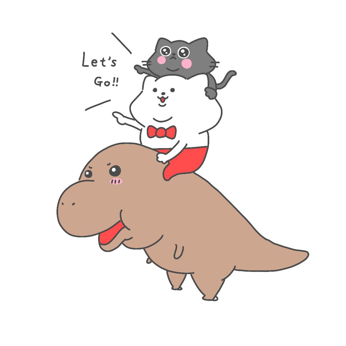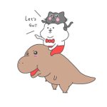 ティラノサウルス…ではなく「ティラノタプルス」に乗るアゴがたぷたぷしてる生き物たち。 #イラスト #イラスト好きな人と繋がりたい #イラスト好きさんと繋がりたい #絵描きさんと繋がりたい #ゆるキャラ #ゆるキャライラスト #ゆるい絵