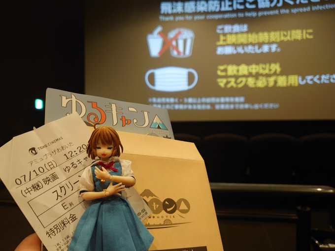 瑛理ちゃんと #ゆるキャン映画 観てきたよ! とっても良かったよ! ミニ色紙カードもらったよ! #今夜のドール撮影120分一本勝負 お題【いっしょ】一緒に映画 #うちのこに癒され24時間 #うちのこかわいい #うちの子かわいい #ドールオーナーさんと繋がりたい #上村瑛理 #尾櫃制服計画
