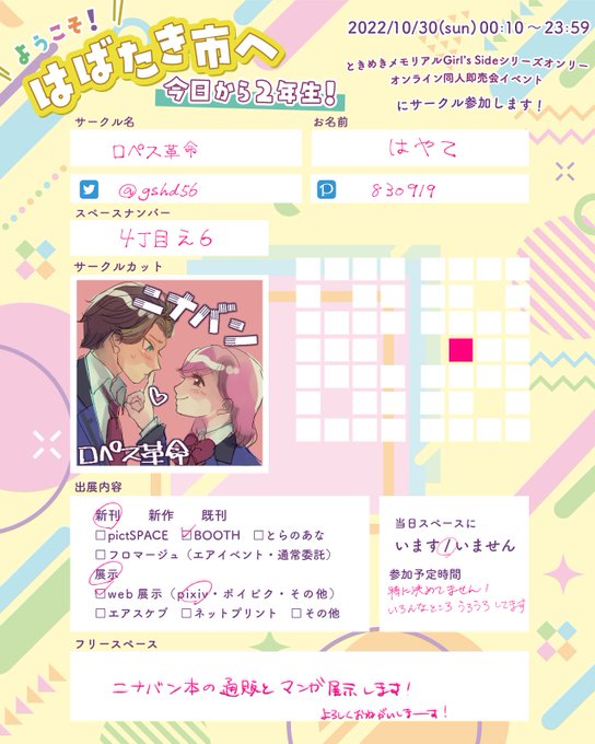 GSwebオンリー ロペス革命《4丁目 え6》 ニナバンの新刊頒布と漫画展示します! よろしくお願いします〜✨ 新刊サンプル:pixiv.net/artworks/10190… #ようこそはばたき市へ2年生 #ようこそはばたき市へ2年生_GS3