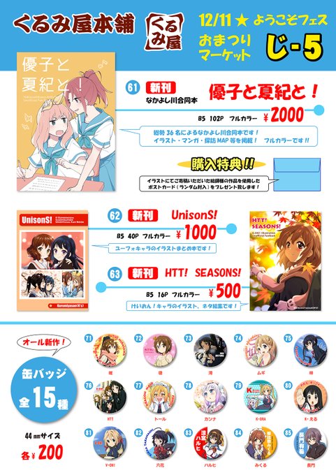 12/11(土) ようこそフェスティバル 当サークルのお品書きです! いよいよ明日…! じ-5でお待ちしております! 何卒よろしくお願い致します…! #ようこそフェスティバル #youkosofes