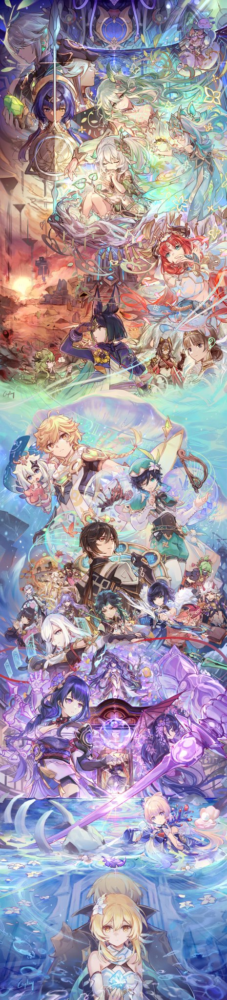 『テイワットでの果てなき冒険の旅・フォンテーヌ編』アート展に参加できてうれしいです✨ フォンテーヌはすでに実装済みなので、アート展もぜひ見てください。#GenshinImpactFontaine #ようこそフォンテーヌへ