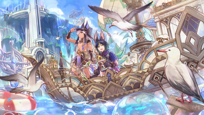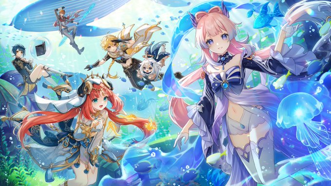 "Ride the Waves to a Rendezvous in Fontaine" Glad this work is to be part of the Endless Adventure in Teyvat: Fontaine Edition Game Art Exhibition! Looking forward to a new adventure! (^^)b #GenshinImpactFontaine #FontaineExpo #ようこそフォンテーヌへ