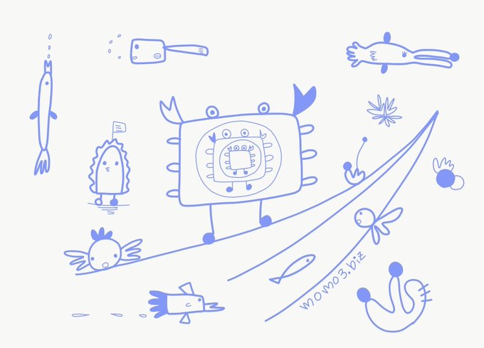 momoオリジナルキャラクター。カニミちゃんと愉快な仲間たち。 #オリジナル #pixiv今日のお題 #線画 #海 #さかな #ようせい #ゲーム #オリジナルキャラクター #アナログ #落書き pixiv.net/artworks/94316…