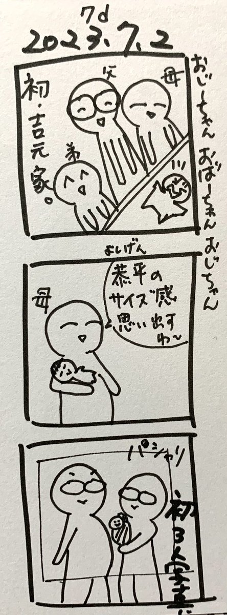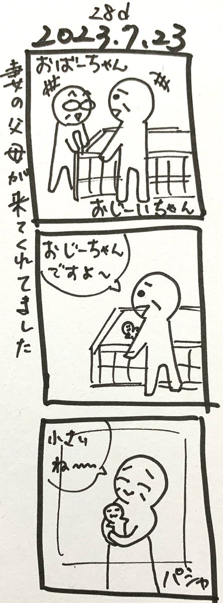 今日の育児漫画。 生後28日目、よしげん育児奮闘記。 今日は嫁の父母、 おじーちゃんおばーちゃんが 来てくれてました。 おじーちゃんは孫と初対面🥳 えらいニコニコでした〜 なんかこっちも嬉しかった〜 #よしげん育児奮闘記 #育児漫画