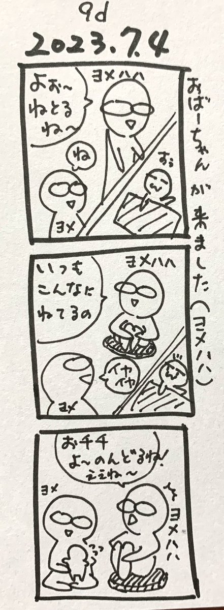 よしげん育児奮闘記。 生後9日目。 今日は嫁の母親が来てました〜 おばあちゃんですね〜 ウチは基本母乳でたまに粉ミルクですが、母乳がよく出ることにびっくりしてました。家系的にあんまり出ないと思ってて心配してたみたい。 よ〜寝てました笑 #よしげん育児奮闘記 #よしげんべっび #育児漫画