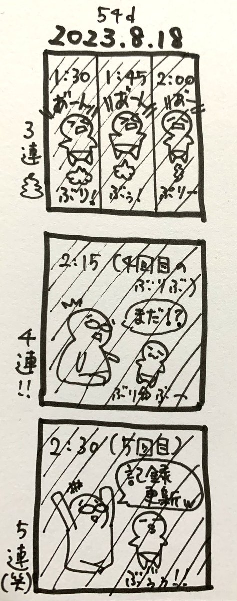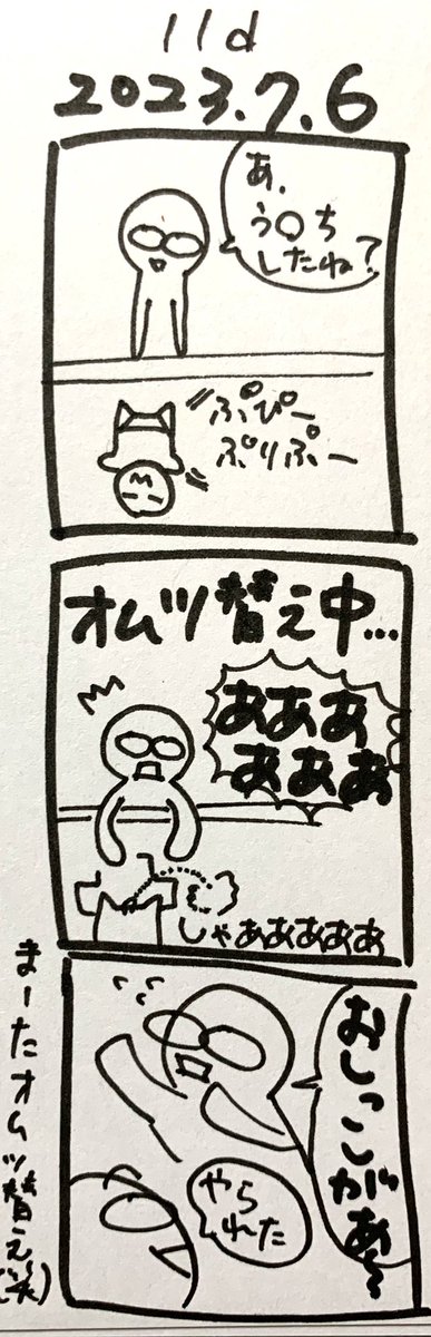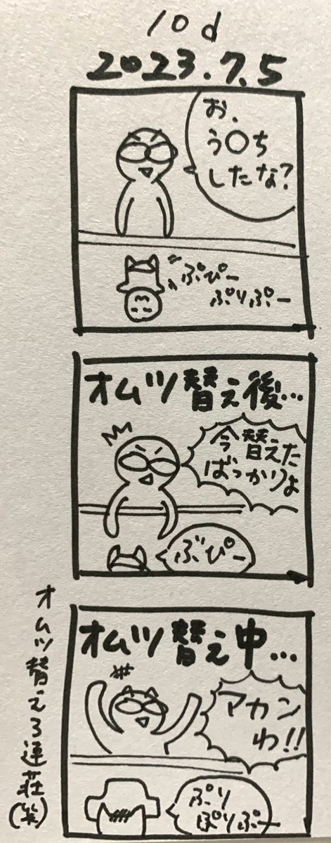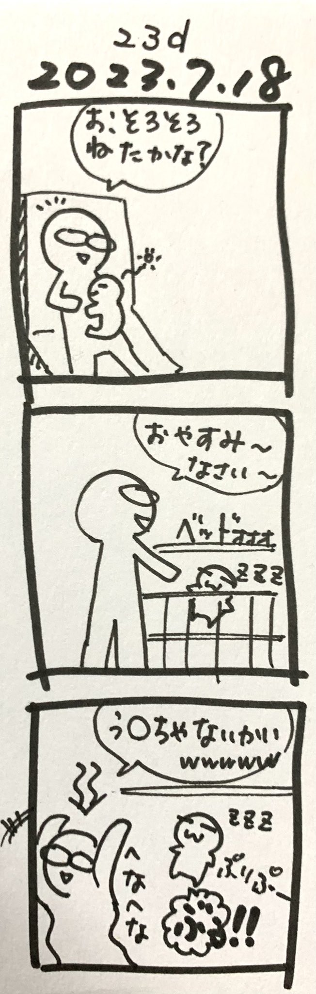 今日の育児漫画。 よしげん育児奮闘記、生後23日目。 寝たかな〜とベッドに置いたら ぶーっ! って激しくう○ちされました💩 嫁は膝から崩れ落ち 見てた私と爆笑でした🤣🤣 おむつ替えても寝てたので それはそれで良し #よしげん育児奮闘記 #よしげんべっび #育児漫画