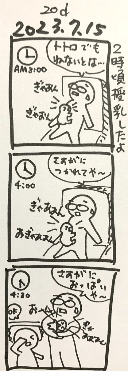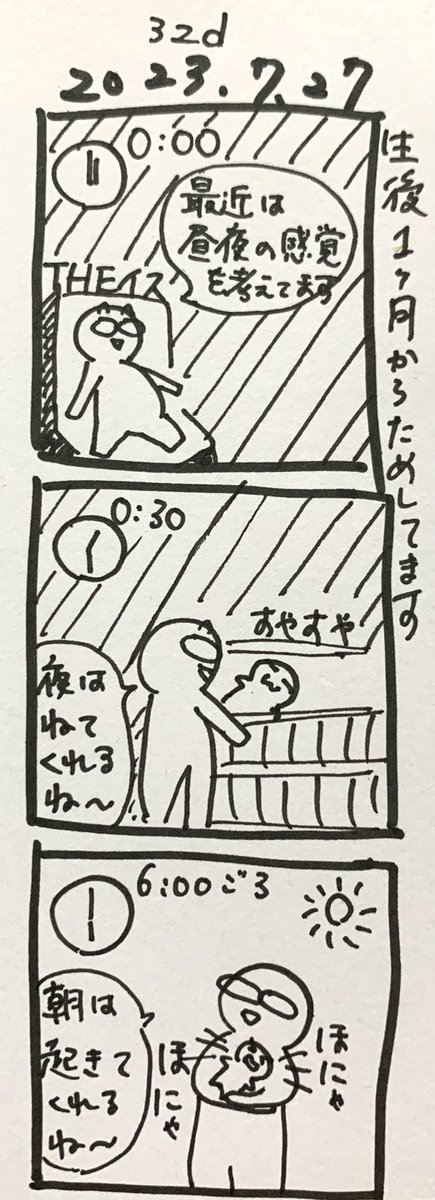 今日の育児漫画。 生後32日目のよしげん育児奮闘記。 生後1ヶ月目のおとといから お散歩を日中に取り入れたり、 24時以降部屋を暗くしたりで 昼夜のリズムをつけてみてます。 とりあえずこの三日間は そこそこ上手くいってます🥳✨ すげ〜〜 #育児漫画 #よしげん育児奮闘記