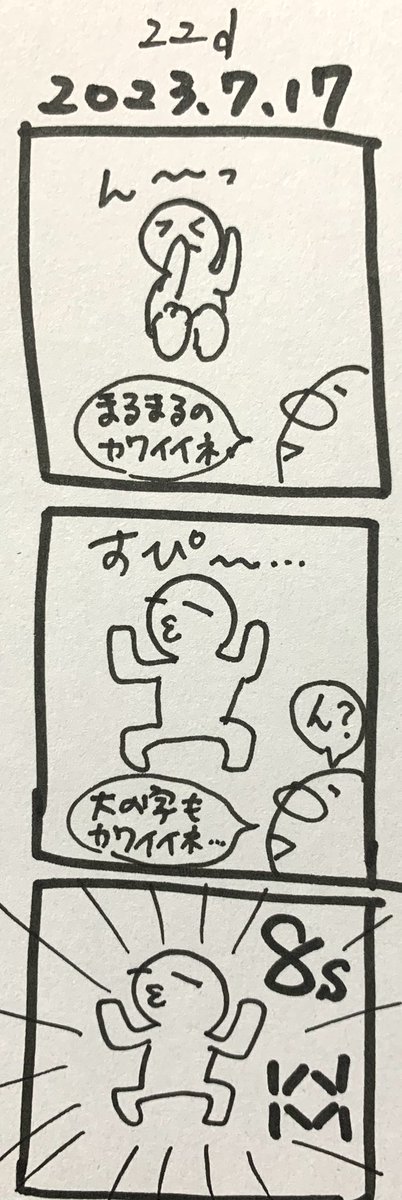 今日の育児漫画。 よしげん育児奮闘記。 生後22日目。 ころんって丸くなるの可愛いんですが 手足を広げて寝るのも可愛いです って眺めてたらこれはもう8s笑 さすがに8sでした #よしげん育児奮闘記 #よしげんべっび #育児漫画