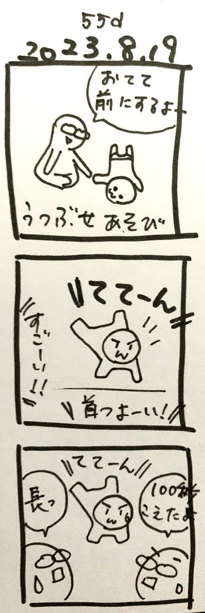 今日の育児漫画。 生後55日目、よしげん育児奮闘記。 うつ伏せ遊びで首を起こす練習😗 日に日に強くなってます。 今日は100秒以上首を上げ続けてて もう首座ってるのではと思うほど笑 日々成長やね〜🥳✨ #よしげん育児奮闘記 #育児漫画