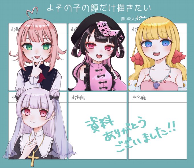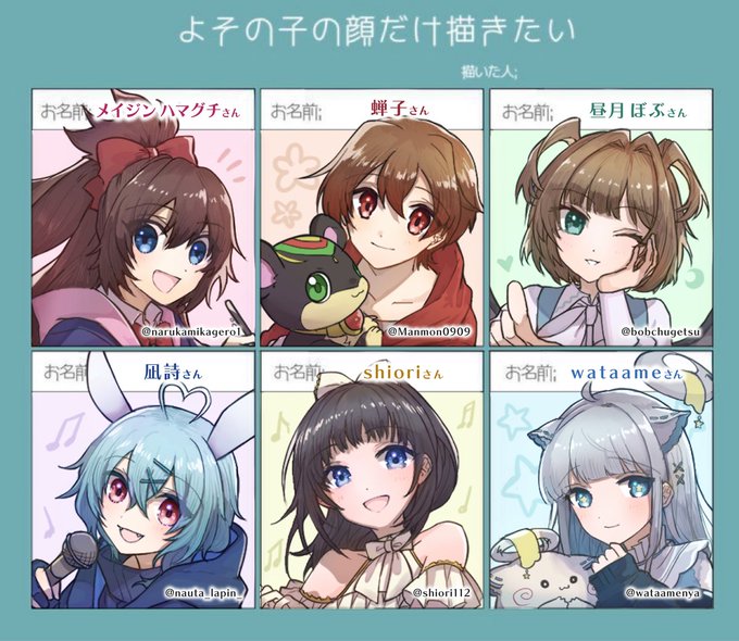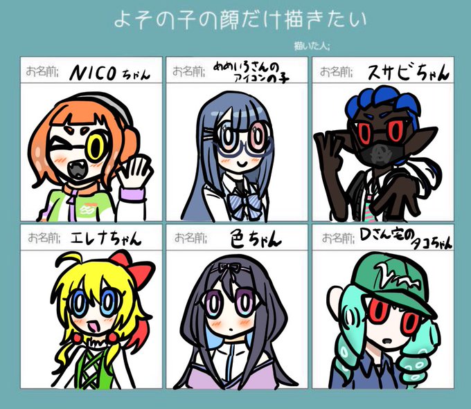 相互さん宅のお子さん達、お借りしました! 皆めっちゃ可愛い&カッコいいな〜って思いながら楽しく描いてた🥳ご参加ありがとうございました! (テンプレお借りしました) #よその子の顔だけ描きたい