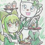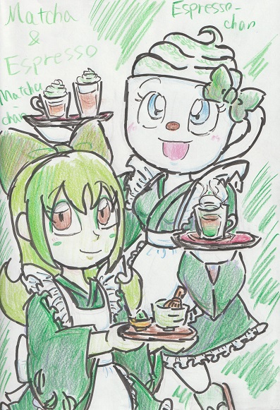 #よそ様のオリキャラをコラボさせたい #アンパンマンオリキャラ サラ氷さん( @salad_koori )のオリキャラのカップアイスちゃんと、我がオリキャラのアキレアさんの百合っぽい絵を描いてみました(´∀`) カップアイスちゃんの頭のカップアイスがちょっと小さくなっちゃったかも……;