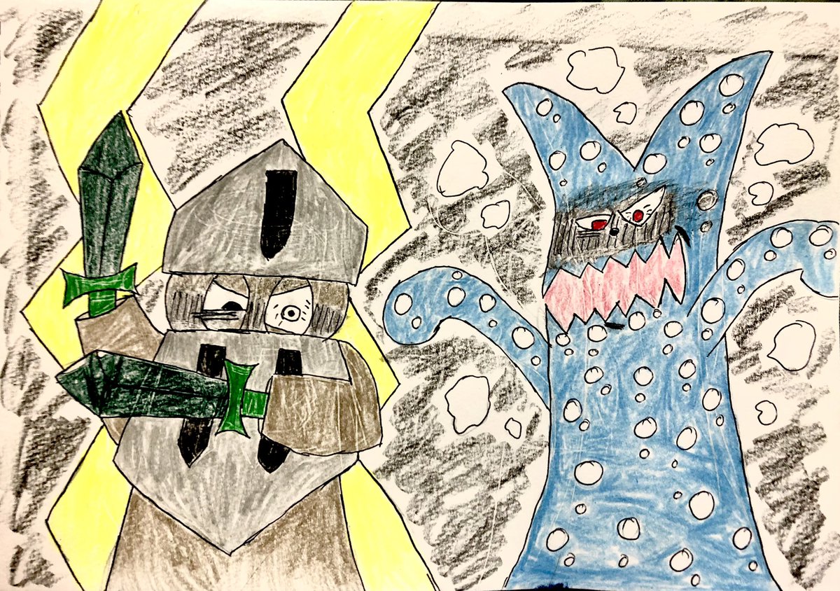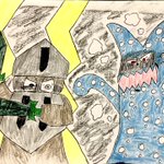 @is91I93yMjGCsst #よそ様のオリキャラをコラボさせたい #アンパンマンオリキャラ ラッキーさん、お待たせ致しました✨ 自分の嫌いな物を正解したと言うことで、前回話したヨロイマンとねっとうおにの共闘をイラストにしてみました😆 2人とも怖い顔にしようと描いてみましたが…😅
