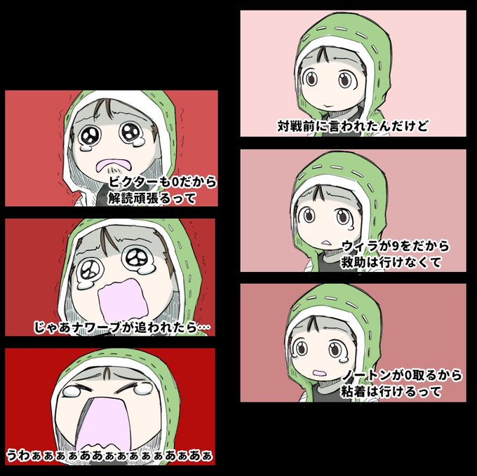 【実録その10(くらいはあるはず)】 ワテ「間に合う!?間に合う!?」 やちち「寄って寄って!回復粘着!」 じょや「板間板間!!」 くま「もうすぐ 寸(止め)だよ~☺️」 #第五人格イラスト #identityVイラスト #よつばと!