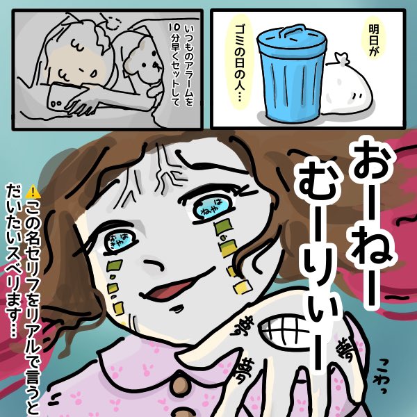 明日はゴミの日なので 早く寝なきゃです 魘夢はよく褒めてくれるので キライじゃないです #鬼滅の刃 #無限列車編 #おやすみ #日常漫画 #使える名セリフ #マンガが読めるハッシュタグ #漫画好きさんと繋がりたい #らくがき展示場