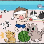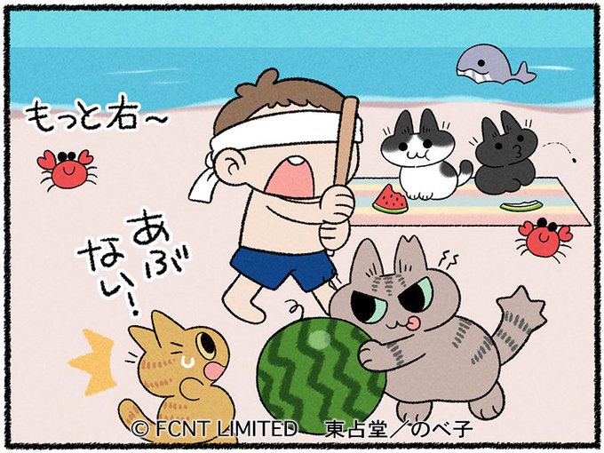 マメトクちゃんが掲載されました!🐈⬛🐈 今回はみんなでスイカ割り🍉海行きたいですにゃ🏖🐱 mametoku.community2.fmworld.net/tane/521496/ #マメとトクのひだまり日記 #らくらくまめ得 #猫 #漫画が読めるハッシュタグ