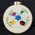 刺繍のおひつじさん(@BukicchoHitsuji )の本を参考にチクチク…ようやく完成… 出来は悪いが頑張ったぁ🥹 #い・らくすと #緑色さんご自由にどうぞ #強く生きろレウクラ #イラスト貯金豚 #コンてすと #らっだぁ運営