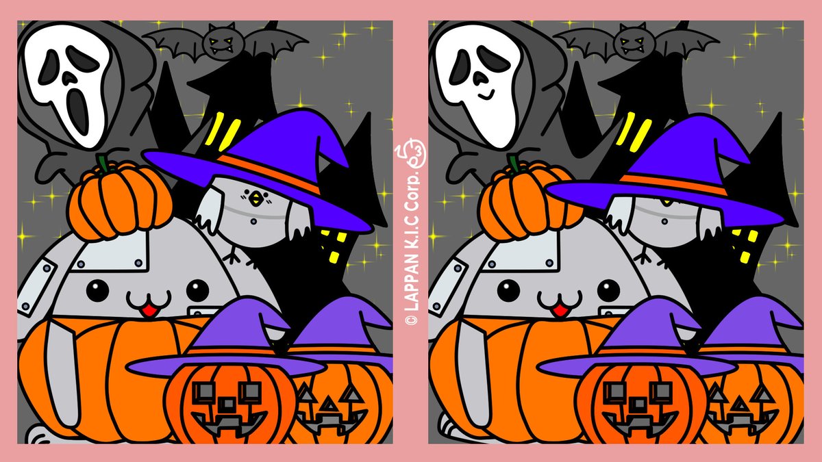 おはようございます( ´ ▽ ` キ)ノ✨ 週の始まり🌙月曜日✨ #590 「間違い探し はろうぃーんver.」 間違いは全部で3つ ✨超簡単✨です Happy Halloween🎃 スッキリして今日も頑張ろぅ☺️ 答えはこちら⬇️ kic-kk.co.jp/sns/a/10/mati-… #イラスト #らっぱんの間違い探し #らっぱんとめたぴー