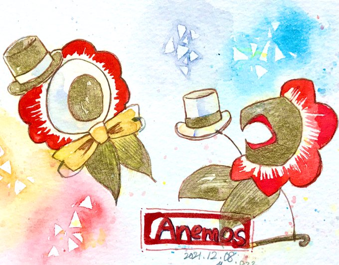 #ヰ世界情緒2周年 ってことは アネモスも2周年なのでは⁉︎と思い描きました_(:3 」∠)_ お花ちゃんたち好きだぁ…… 2周年に合わせておしゃれしてるアネモスです #ヰ世界情緒美術部 #らぷらす美術同好会