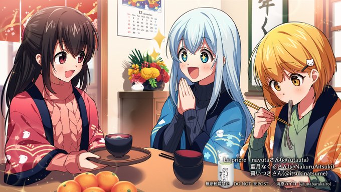 【おしらせ】La prière の皆さまの忘年会配信のサムネイルを描かせていただきました! #らぷりえーる nayutaさん( #7utauta )/藍月なくるさん( #NakuruAitsuki )/棗いつきさん( #itsukinatsume )
