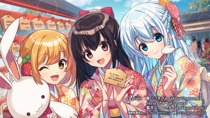 【おしらせ】La prièreさん( #Lapriere_info )のお年賀イラストを描かせていただきました! #らぷりえーる 🐰棗いつきさん( #itsukinatsume ) 🐰nayutaさん( #7utauta ) 🐰藍月なくるさん( #NakuruAitsuki )