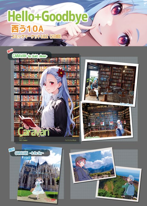 お久しぶりです、間に合いました。 明日のお品書きになります。 ●新刊あり〼 エモな図書館を巡る旅本で、成分的には紗彩ちゃん98%という感じです。 よろしくお願いします。 #コミックマーケット102 #C102 #ららマジ