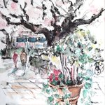 #りえこさん冒険の思い出 その814 桜の満開宣言が出ても、まだ満開には少しかかりそう。道端には冬の花も見られてなかな季節〜かな? #絵 #旅 #watercolor #スケッチ #花 minne.com/ritakahashi4 rieko44.base.shop