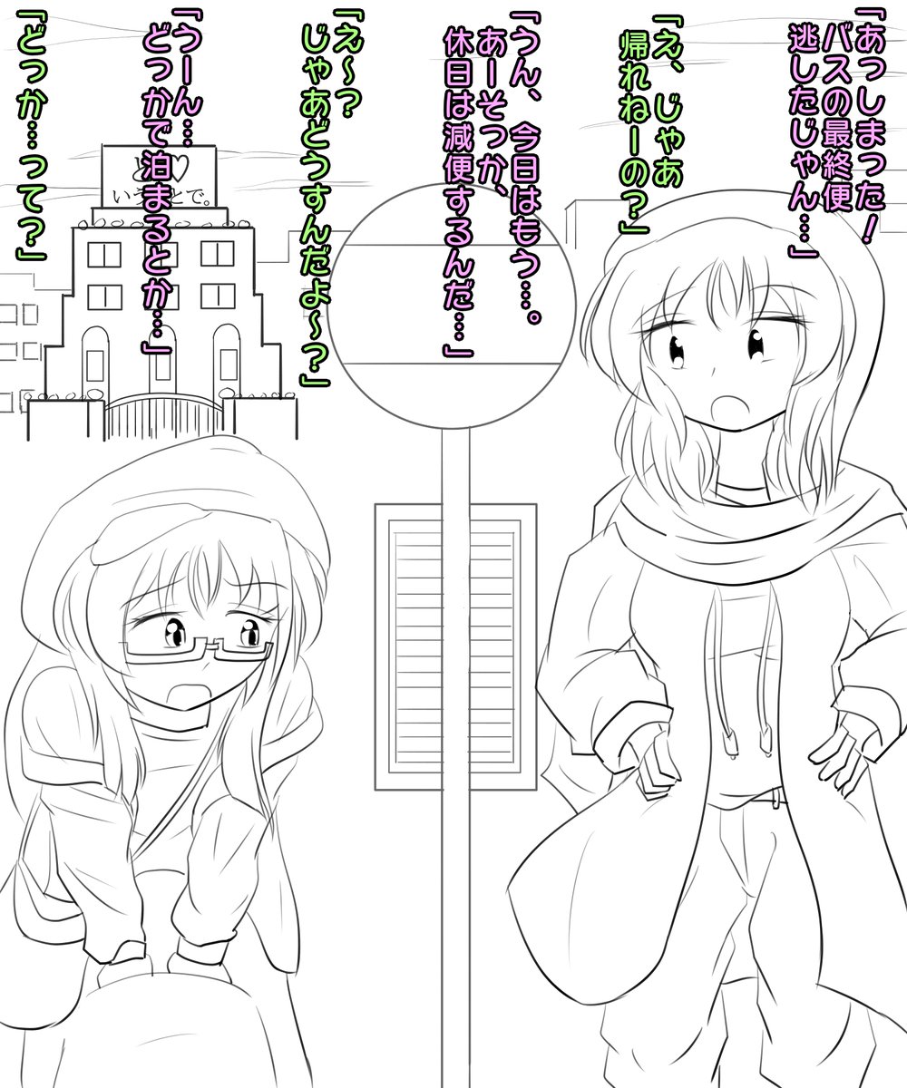 うーっし久々に描けたぞ、朝帰りのバスの中で眠気に負けて二人とも眠るりくりょく。 なんやかんやしてたせいでかれこれ一ヶ月以上ぶりとは…… #りくりょく #百合 twitter.com/umiyagi32x/sta…