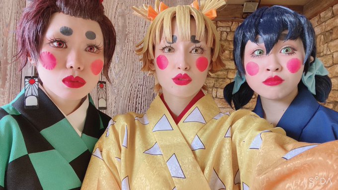 【COS:鬼滅の刃】🎀💋🎴 踊れや踊れ 時を忘れ 今宵 共に あゝ狂い咲き 炭子:おまめ 猪子:ひびきちゃん photo:えりーさん パフォーマンス中のお写真です! 2枚目の所、無意識に真顔差し込んでしまったんだけど、バッチリ撮って貰ってました😂✨✨ #りこっぷ #ラグコス2023 twitter.com/re_cop5/status…