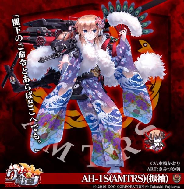 『りっく☆じあ~す』にて「AH-1S(AMTRS)(振袖)」を描かせて頂きました。ゴージャス晴れ着で登場です。もう、もどれない。CVは水橋かおりさんです。 よろしくお願いします ! rickg.earth #りっくじあーす