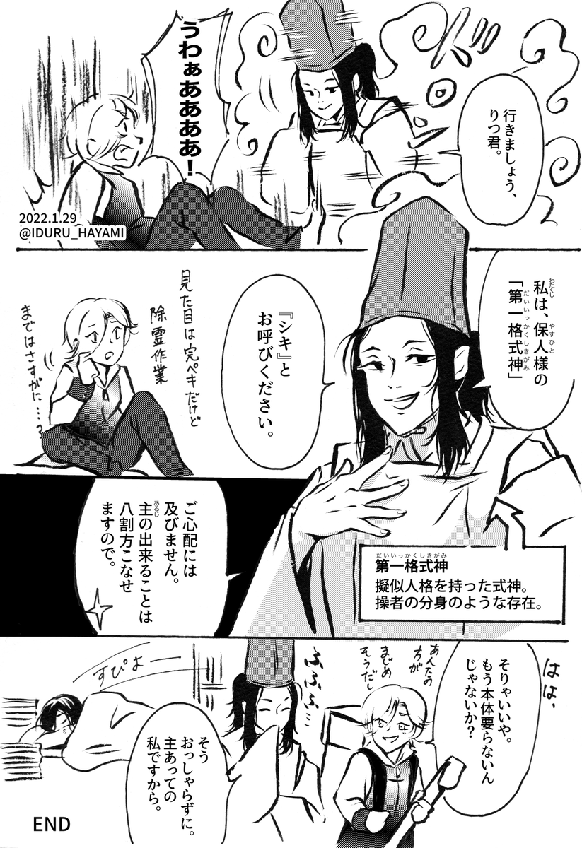 式神の方が有能なタイプのあれ (式神の能力は当然、操者の霊力に比例するので霊能者としては優秀なんだけどね) #イラスト #漫画 #漫画が読めるハッシュタグ #illustration #りつとやすひと