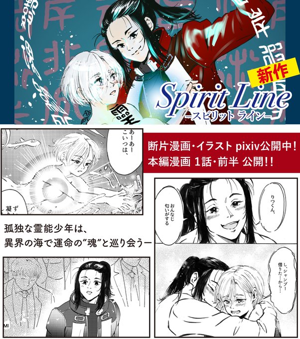 新作「スピリット・ライン」1話/前半 公開しました〜 pixiv.net/artworks/10570… 孤独な霊能美少年が不思議なお兄さんに出会う回です! 後半執筆中なのでご感想などいただけると非常に励みになります〜 #りつとやすひと #創作漫画