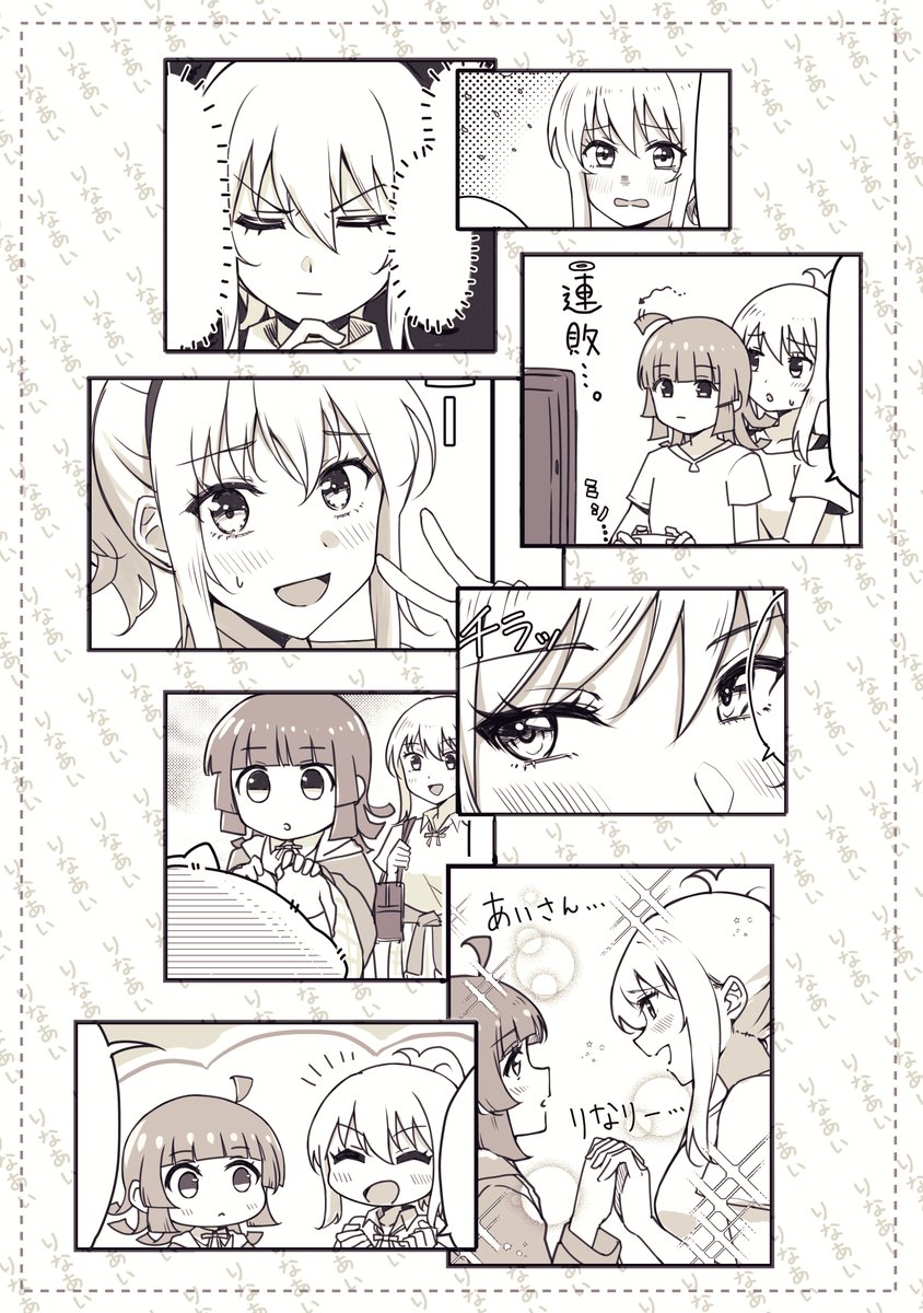 4/16開催の僕ラブにて頒布される、田中らぶリ~な♪さん(@ohohonohoho)主催のりなあい合同に参加させていただきました!愛さんになりたい璃奈ちゃんの嬉し恥ずかし3ページ漫画です!入手しましょう #りなあいフェスティバル