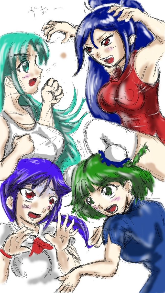 りゅーりゅーみー姉妹vsサミアルミア姉妹の対戦を描きました! 一方的な感じにしか見えない気がしますが気のせいでしょう 描くのに2時間もかかってしまった。 かかりすぎですねぇ。精進不足です。 #うちの子描いてみませんかキャンペーン #オリキャラ #対戦 #バトル #りゅーりゅーさん #サミアちゃん