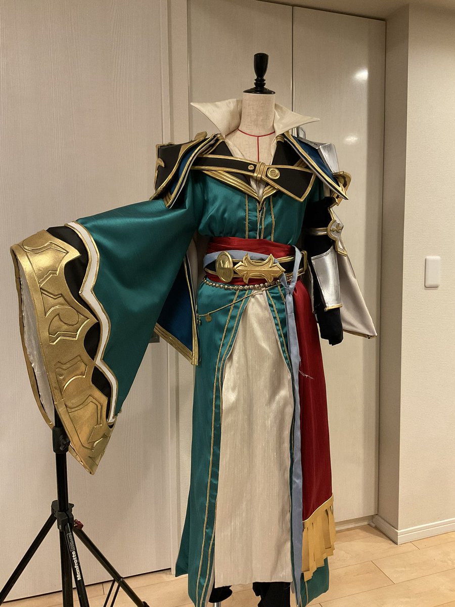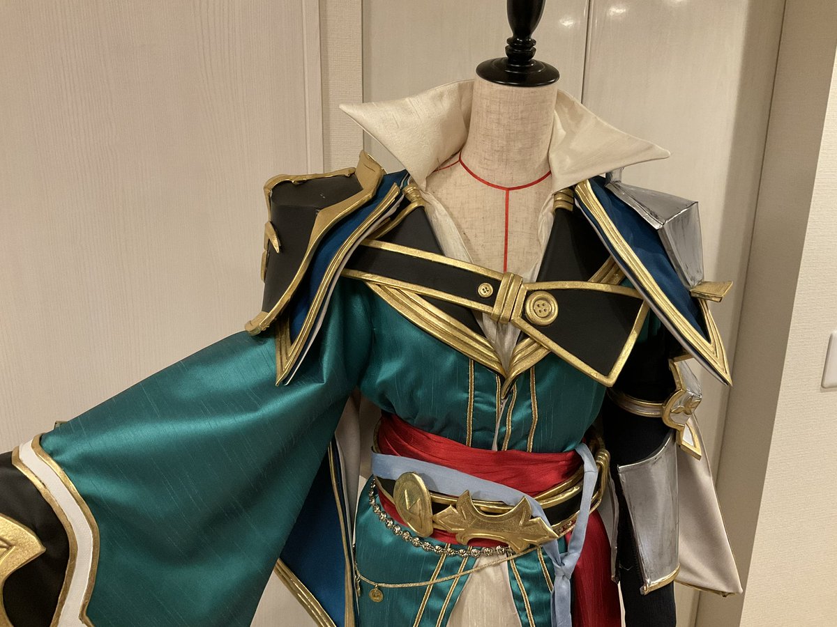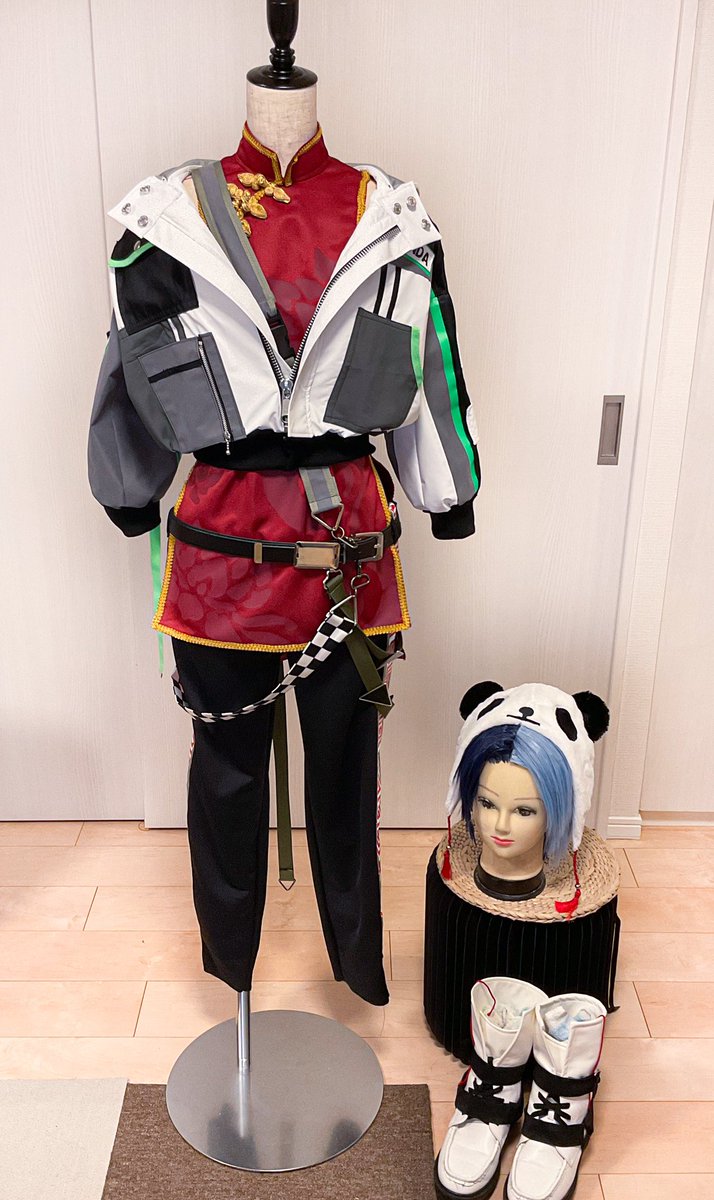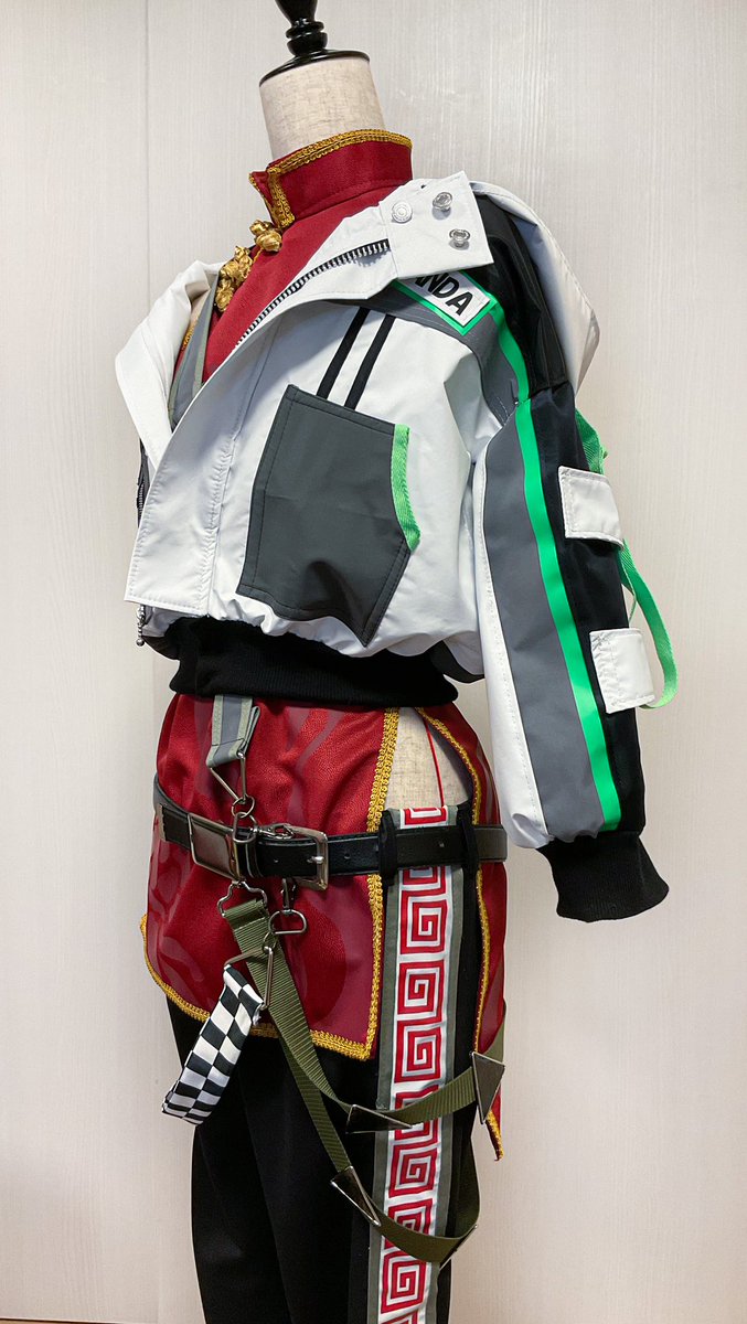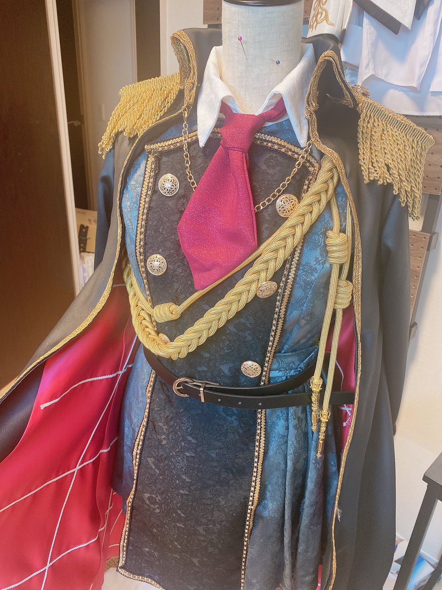 ★2道中も大切な過程 東雲彰人 うっすらきらめく可愛い中華衣装に仕上がりました! 中華風味を強めにしたくて、赤と金のフチの生地は模様強め。気持ちは★4!w ちなみに、一番大変だったのは紐です笑笑 #プロセカ衣装部 #りりかるルナさんの衣装製作 #prsk_cos