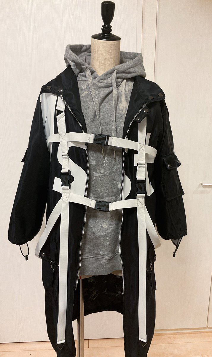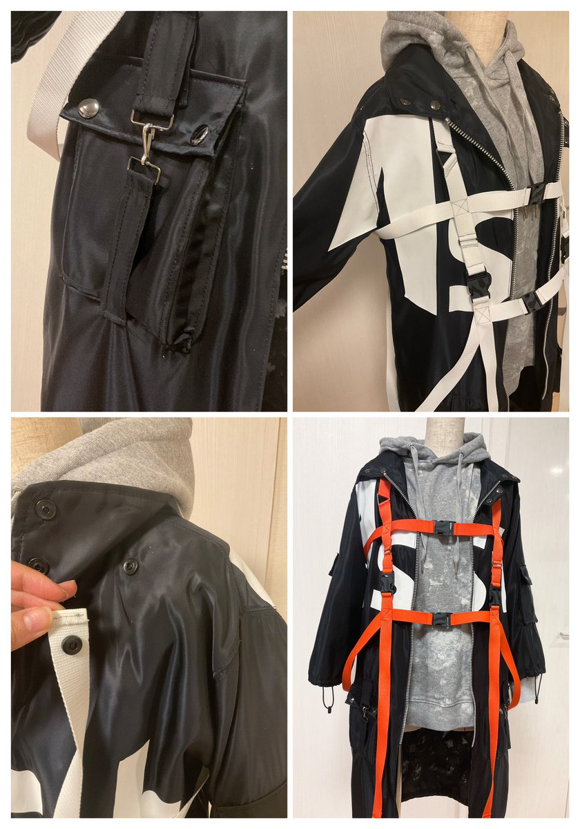 フーディー・ハーネスベルト 1st Anniversaryのバランスに全力をそそぎました😁 カジュアルなコートっぽくなるように太い糸で縫い目をつくって、それっぽい感じにしました。ポケットはマチ付き!ベルトは簡単に換装できるように工夫。 #プロセカ衣装部 #りりかるルナさんの衣装製作 #prsk_cos