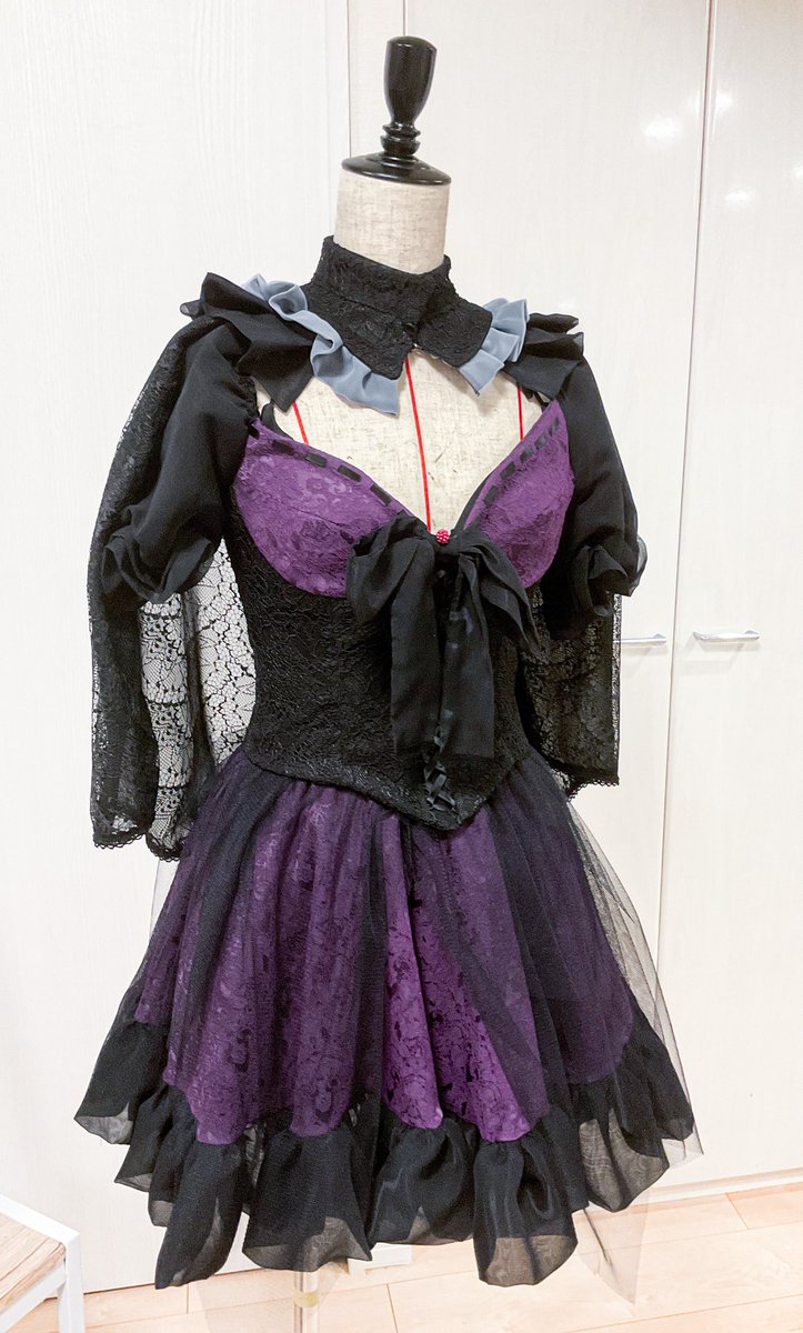 魔法少女リリカルなのは ディアーチェ コラボ衣装みんなかわいすぎて最高!あまりにも美しくたたずむディアーチェがやばいので美しい衣装にしました!!メインはサテン+ジョーゼット+レース生地!スカートはジャガード。 ヘッドドレス可愛い!!! #りりかるルナさんの衣装製作