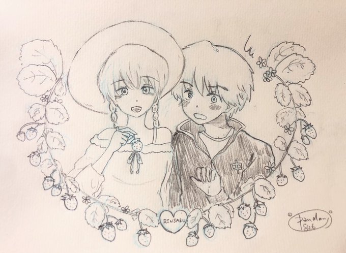 「六道くん、これ美味しそうな苺だよ!」とか言って。りんさく、デートで安易にアーンしていて欲しい。 #りんさく #落書き好きさんと繋がりたい #絵描きさんと繫がりたい #境界のrinne #りんさく #落書き好きな人と繋がりたい #絵描きさんじゃなくとも繋がりたい