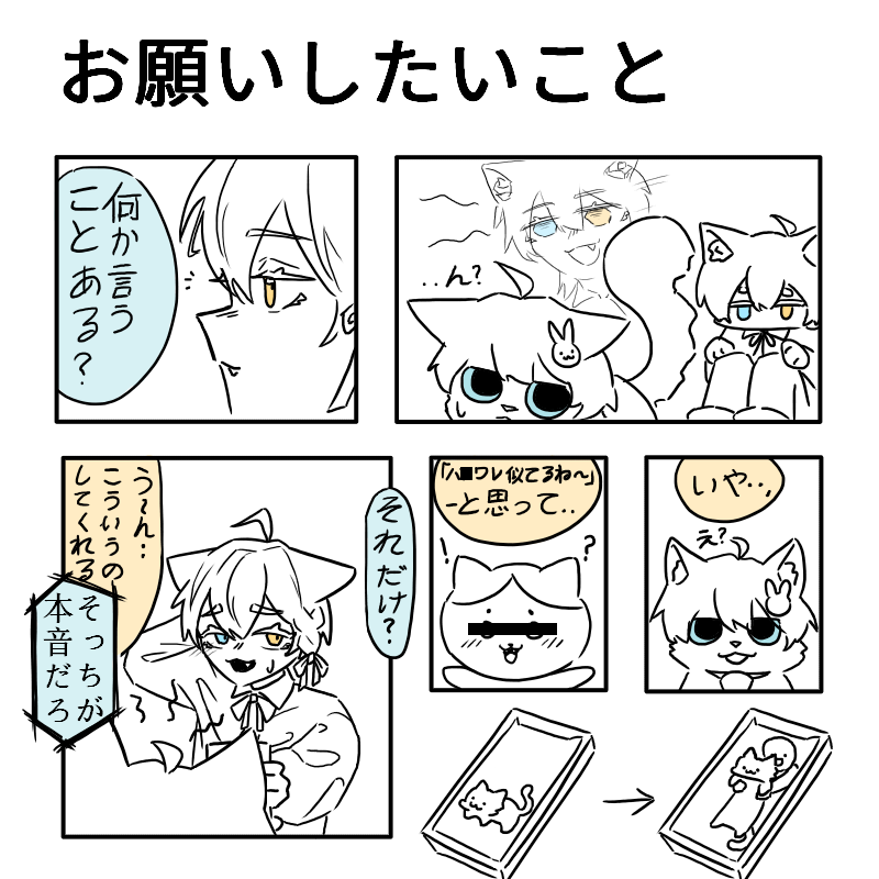 日本で今日はは猫の日だと聞いて… 「実は夢でした~」 みたいな #セブプラ展 #こむぼっくす #ねぇねぇあまくん #りーくんにとどけ #まさとしさん描いた #かきさんツラ貸せよ #みてみてかなたん