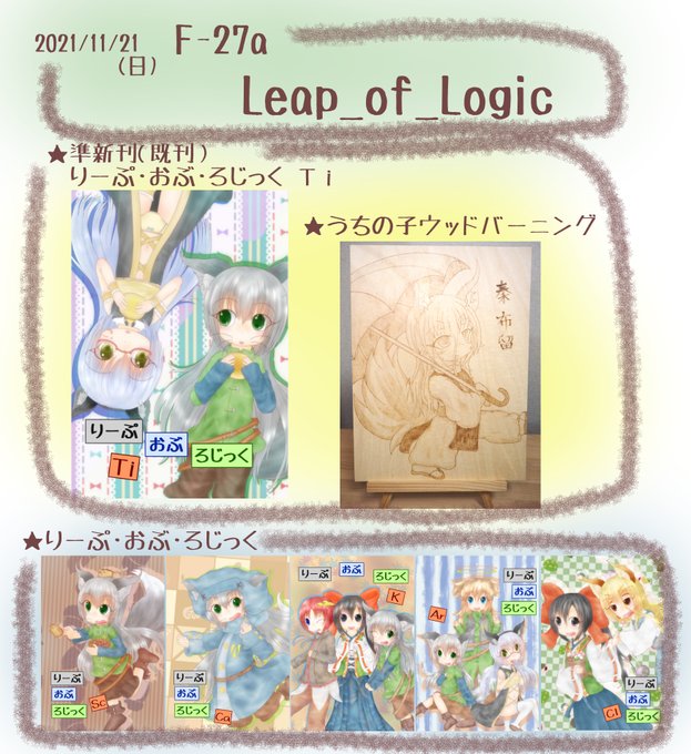 11/21(日)開催のCOMITIA138のお品書き☆ 新刊無いよ……(´;ω;`) 物置きから出てきたウッドバーニングあるよ! (`・ω・´) なんかペーパーでも持っていくね! #COMITIA #コミティア #りーぷ・おぶ・ろじっく