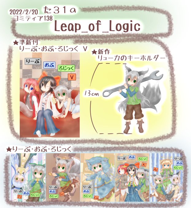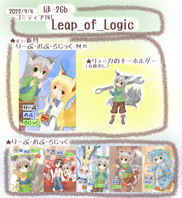 2/19(日)コミティア143に参加です☆ お品書きは冬コミと同じ内容ですので、来られなかった方は是非に~♪ スペース【そ33b】でお待ちしております! #コミティア143 #COMITIA143 #りーぷ・おぶ・ろじっく