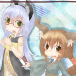 遅すぎてあけおめうさぎ絵☆ うさぎ1『金が無いからひとつの巫女衣装を二人で分けただと!!??』 うさぎ2『しかもこれ、ド○キのぺらぺら生地のコスプレ服じゃないですかぁ~』 ことよろ #りーぷ・おぶ・ろじっく #うちの子 #オリキャラ
