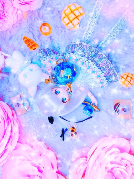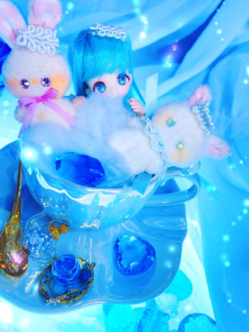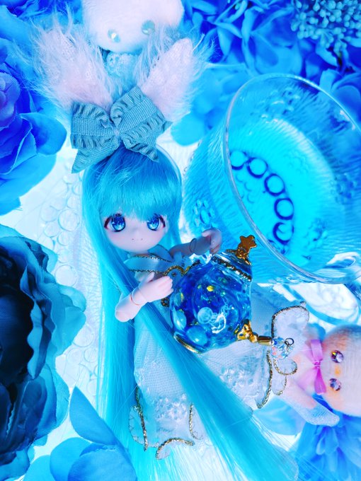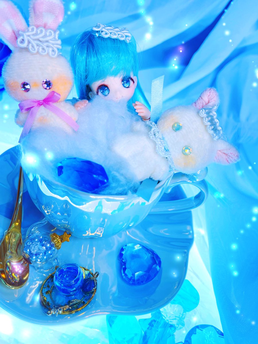 お題【ゆめかわいい】 ꙳✧˖°⌖ 青のお茶はいかが? ꙳✧˖°⌖ #今夜のドール撮影120分一本勝負 #うちのこに癒され24時間 #ノードール・ノーライフ #うちのこかわいい #OBヘッド #るるろびぬい #今日のる~ちゃん