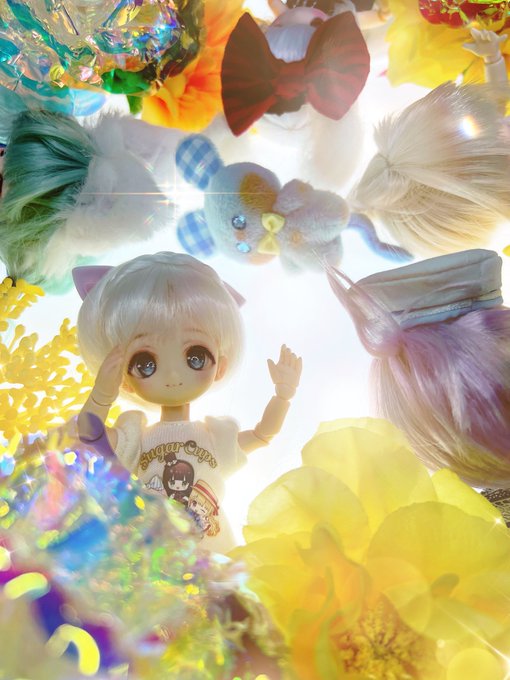 #今夜のドール撮影120分一本勝負 お題【最近買ったドール関係】 ⌖꙳ ✧˖°素敵なお品たち~ ꙳✧˖ °⌖ ₍₍ ( * ॑ ॑*) ₍ᐞ•༝•ᐞ₎ノシ(˶ᵔᵕᵔ˶) ⁾⁾ #るるろびぬい 🧸🌙 #御伽重娘 🤲 #ぷりまび服 👗 #カニホル服 🃏 #fioristag 👑 #MMitem 💈 #OBヘッド #FWDOLLmini