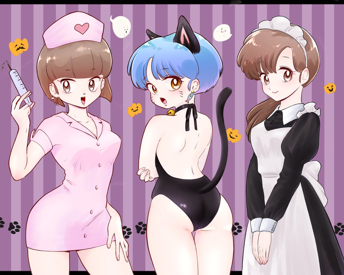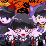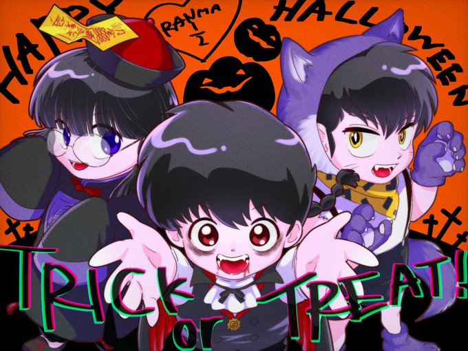 お菓子ももらうし、いたずらもしそうな三人。 #らんま #るーみっくハロウィン祭 乱馬ムース良牙のトリオ大好き。 ハロウィン、幼児化、ごちゃごちゃ描き込みイラスト。どうしたらかわいくまとまったイラストに仕上がるのか🙄