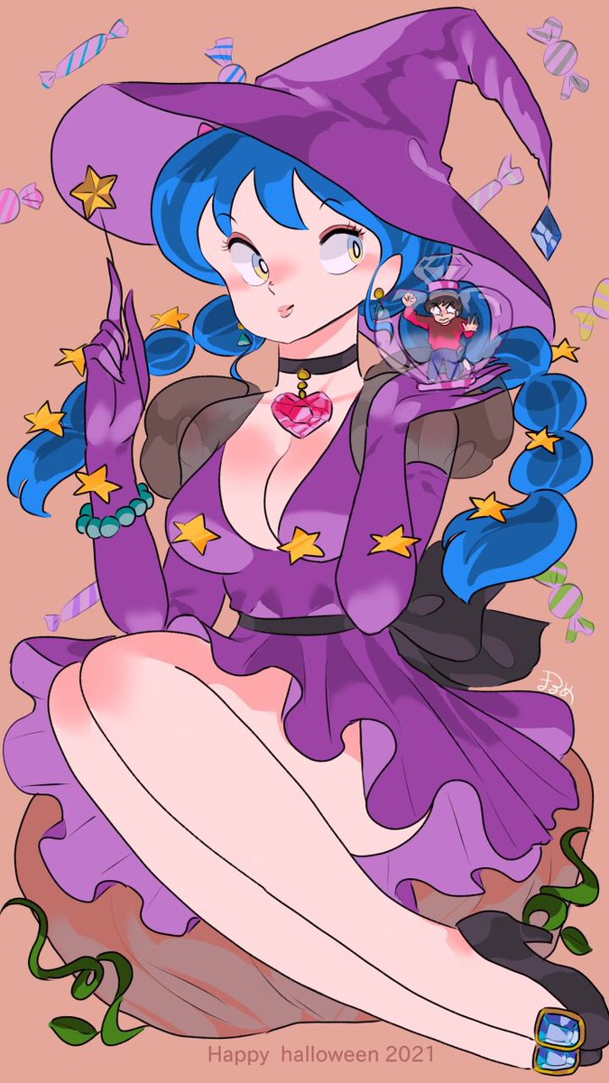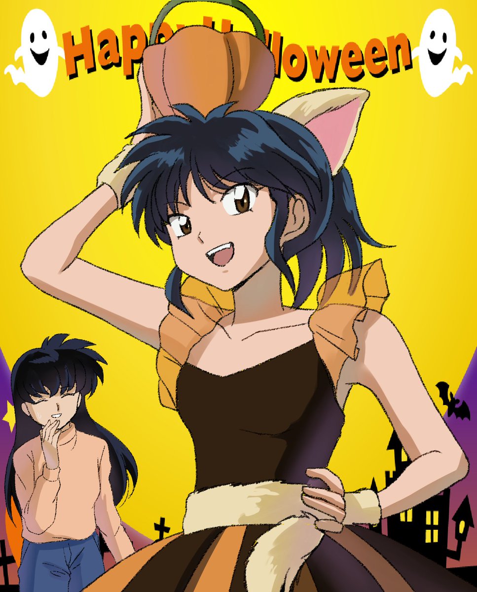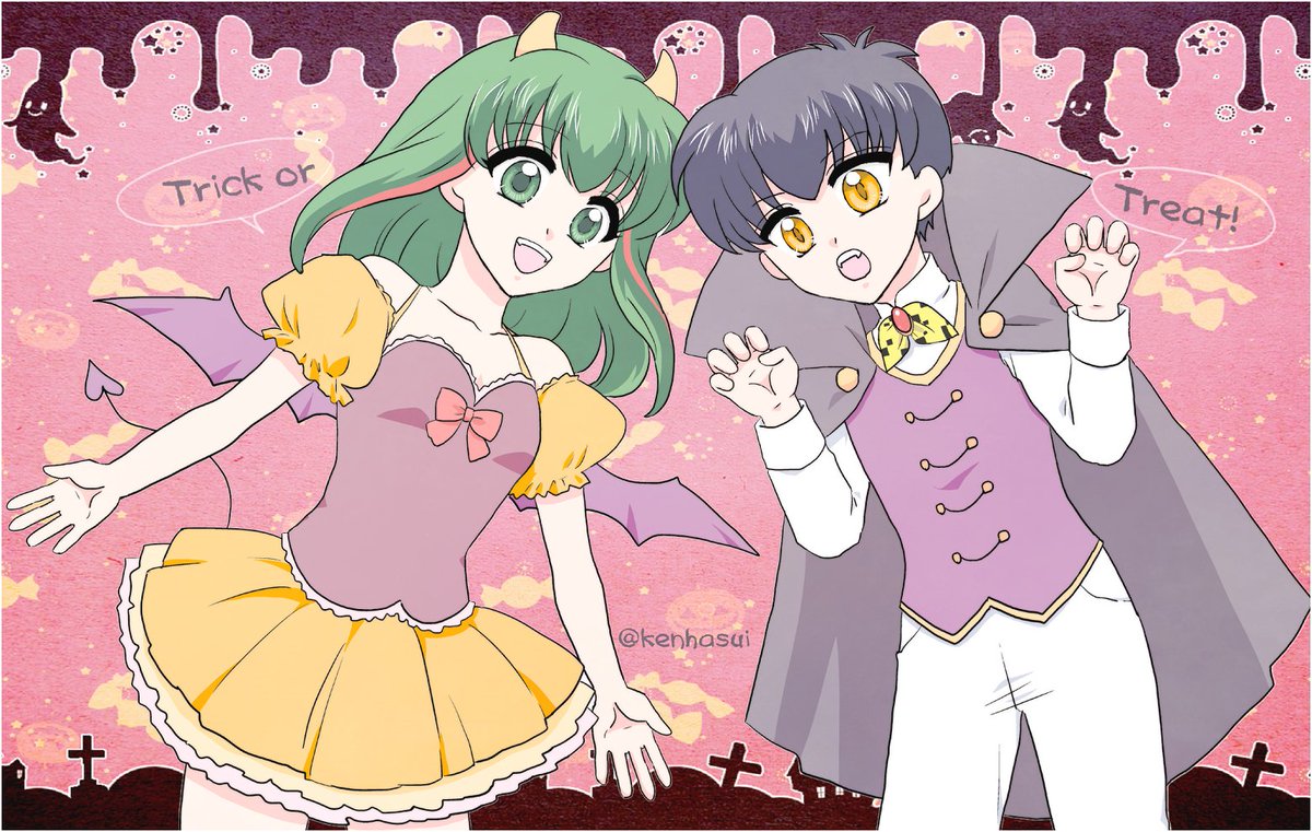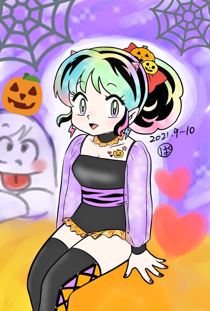 #るーみっくハロウィン祭 あ〜何か良いタグあるんだな〜♪と思って急遽描きましたがすいません これしか頭に浮かばなかったのよ 「ランゼは俺の嫁」 そんな事を言っていた日が私にもありました ラブローションて…何だろう… (オサン遠い目) #うる星やつら #ときめきトゥナイト